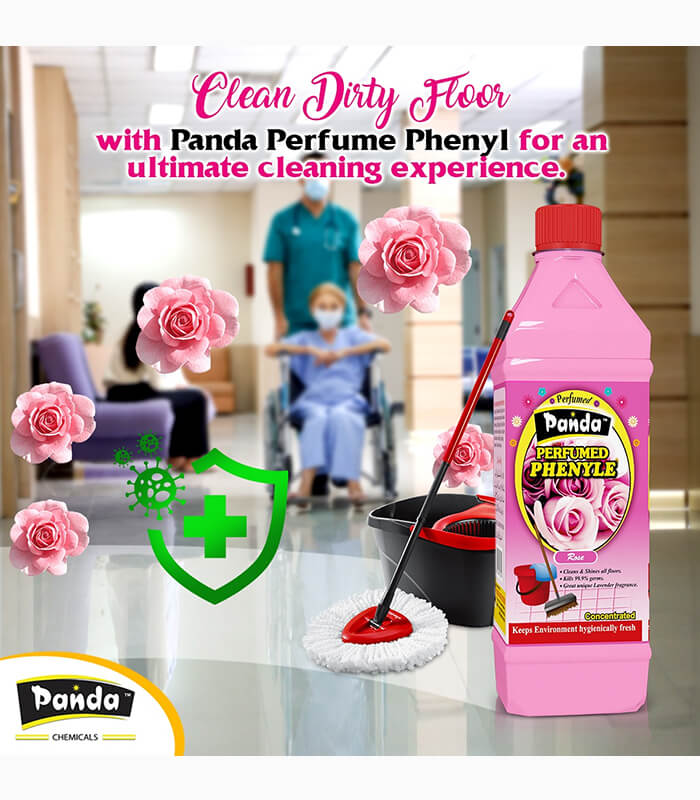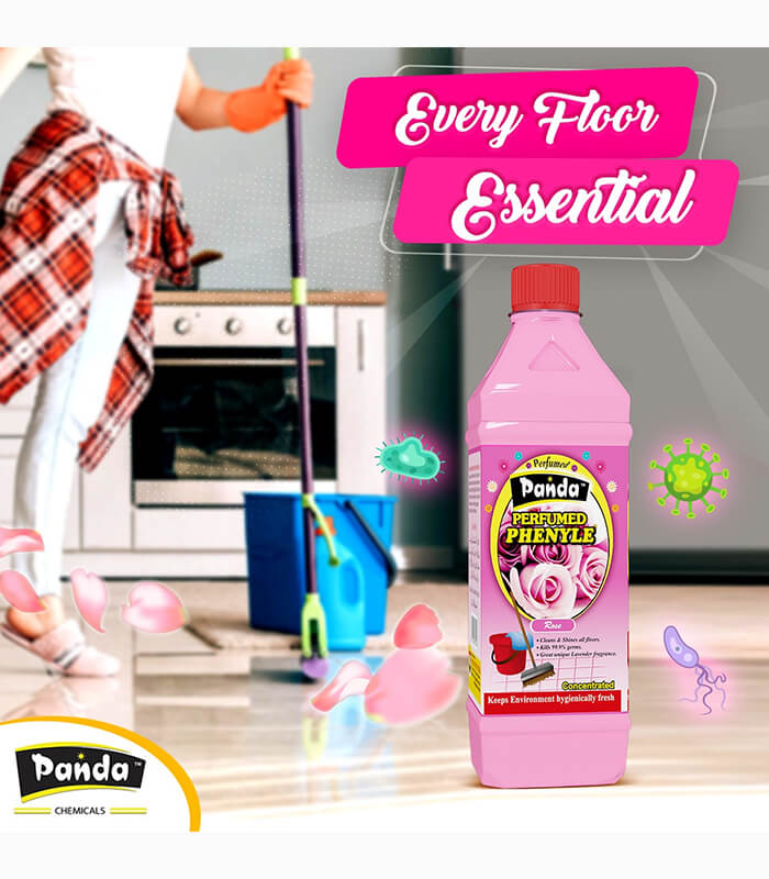 - For Regular Cleaning: Mix 1 capful of Panda Rose Phenyle with 1 liter of water. Use to mop floors or wipe down surfaces.